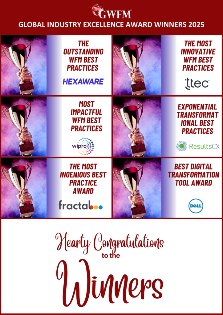 The Global WFM Chartered Body (GWFM) Awards are renowned for upholding prestigious international standards of excellence. These awards celebrate outstanding achievements in global industry innovation, recognize exemplary workforce management practices, and honor the development and implementation of advanced WFM tools.