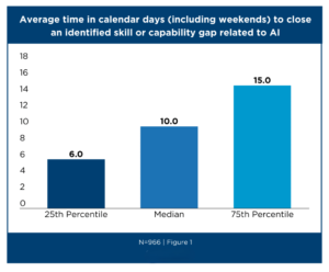 The assumptions above can make AI skills development feel like a massive undertaking. In reality, APQC benchmarking shows that the cycle time to close an AI skills gap is far shorter than many organizations might assume, with organizations at the median closing gaps in 10 days or fewer.